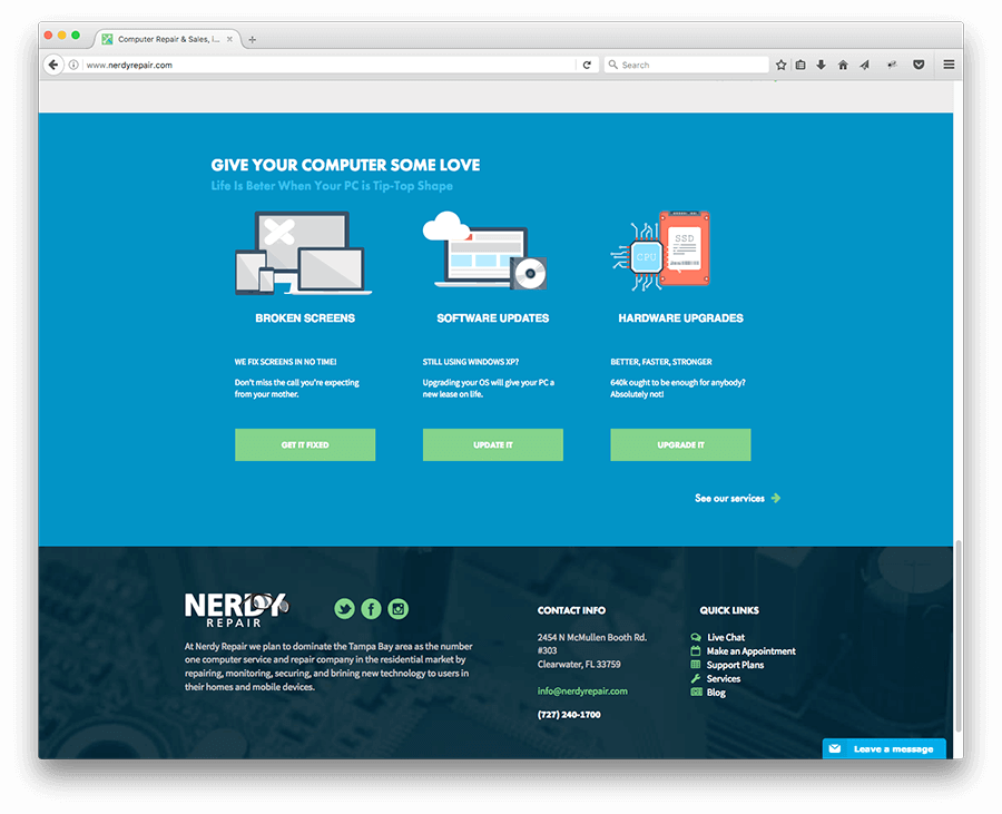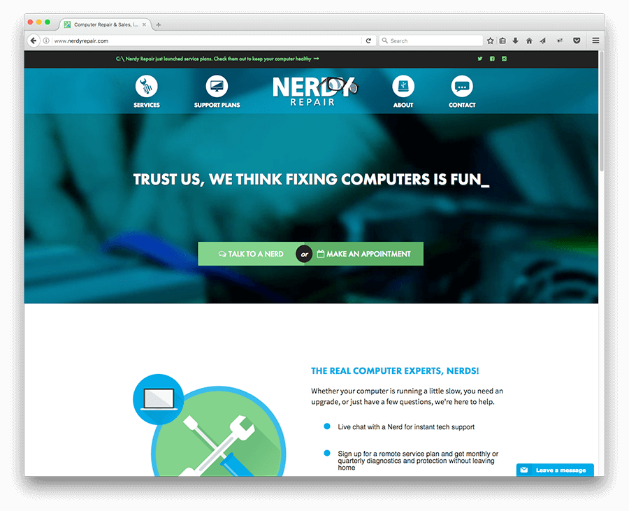 The Nerdy Repair brand and website are designed to represent the quality of service that Nerdy Repair is known for.