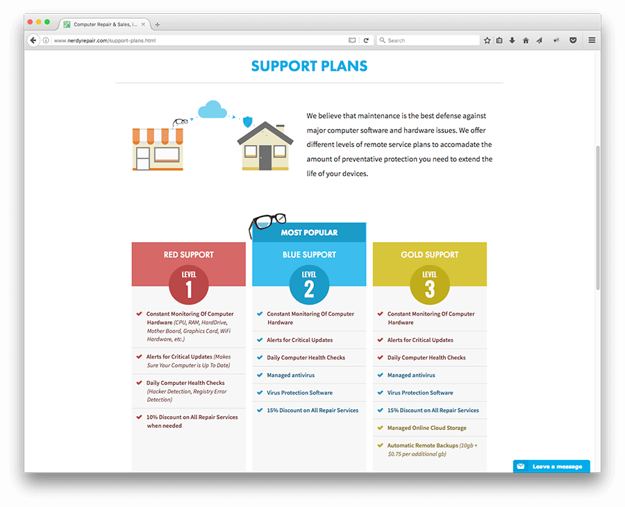 Nerdy Repair’s mission is to fill a gap between the typical neighborhood computer repair shop and giant companies such as Geek Squad. Local shops tend to have lower cost, but lack some of the customer service features that a high-priced company like Geek Squad has.
