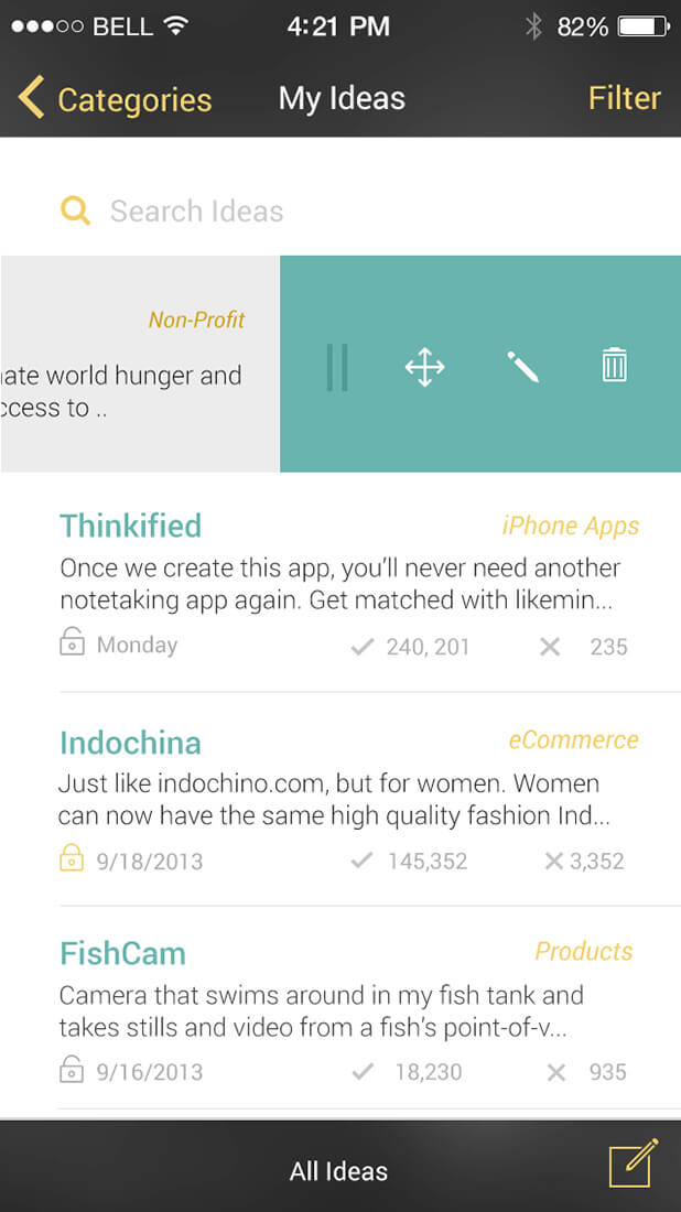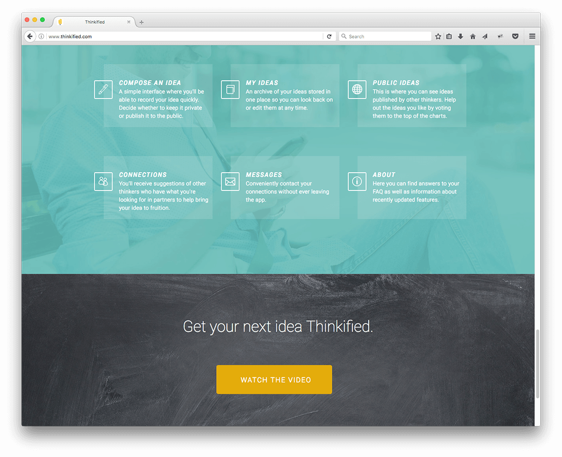 Thinkified has 4 distinct functions. It’s main purpose is to take and organize notes, it also has chat functionality, it’s also an up-down voting message board. It’s last function is to match people’s ideas/projects with other people with complimentary skills.