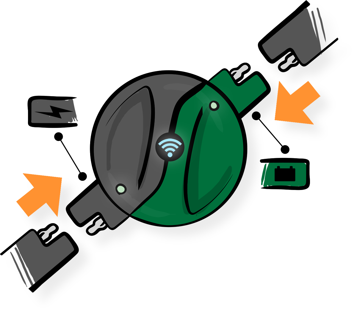 The Wireless Monitor measures voltage as the battery’s current passes through. The product’s form was inspired by the concept of Ying and Yang because of the energy moving in and our. The small circular shape also gives the user great grip for when they want to connect or disconnect either end of the device. The two color motif also gives the user an easy to remember mnemonic for how to connect the device.